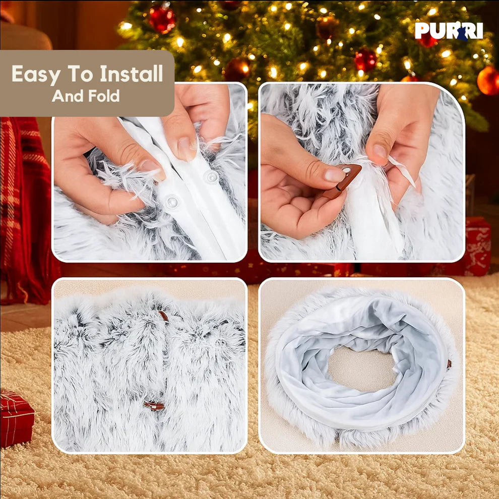 Yes! The tunnel is designed as a circular ring that fits around most standard Christmas tree bases. Its flexible shape allows it to wrap comfortably around the trunk while staying secure and cozy for your cat.